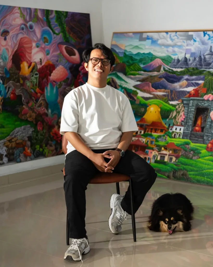 Galih Reza Suseno (Galih) is a young artist based in Yogyakarta. His artistic interests revolve around themes of spirituality, humanity, and their relationship with nature. His experiences of and contemplations on nature are expressed through the exploration of textures, achieved using modelling paste as his primary material. Galih has actively exhibited his works both nationally and internationally. In the past three years, Galih has developed the characters LOCIOUS, which represents natural elements within his works. He has held four solo exhibitions: Hope Beyond Absurdity (Tembi Rumah Budaya, 2012), Imago Dei (Bentara Budaya Yogyakarta, 2017), The Wanderlust (Srisasanti Gallery, 2021), and Universe of Now Whitespace Art Asia, 2023). In addition, he has participated in various art competitions and received several awards, including the Basoeki Abdullah Art Award in 2017 and 2019, as well as the Gold Emerging Artist title at the UOB Painting of the Year (2014).